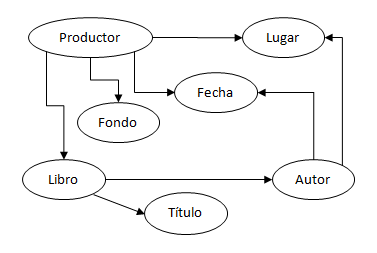 Estos vínculos y mapeos abren perspectivas a otras operaciones, como las de compartir los registros de descripciones archivísticos con otros registros de otras instituciones. Esto se logra a través de un protocolo —OAI-PMH1— que permite compartir descripciones de registros por medio de una lingua franca, que es Dublin Core. De esta forma, si alguien que busca registros, por ejemplo, de desaparecidos, podrá acceder a registros de distintas instituciones si estas los comparten. La posibilidad de dar semántica a los datos es otro escalón de posibilidades. Podemos decir que el productor de un fondo nació en determinado lugar y en una determinada fecha y, también, escribió un libro, que tiene como un título y que fue prologado por otro autor que nació en tal lugar y fecha. Y, así, se puede seguir tejiendo un montón de información en forma indefinida, saltando de nodo de información a nodo de información relacionada por distintas propiedades, como ser autor, haber nacido en determinado lugar, etc. (Figura 2).