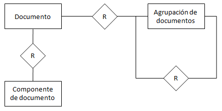 Lo que antecede es una visión muy general, porque, además del documento, aparecen las partes de este y las agrupaciones de los documentos. Un documento puede formar parte de una agrupación (digamos una serie) y estar formado por partes (por ejemplo, puede contener un video). A su vez, una agrupación de documentos (una serie) puede formar parte de otra agrupación (un fondo), como se ve en la Figura 4.