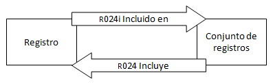 Por otro lado, está la relación inversa RiC-R024, en la que un elemento del conjunto de registros (por ejemplo, serie correo) se vincula con un elemento de registros (un correo en particular), con la denominación incluye.