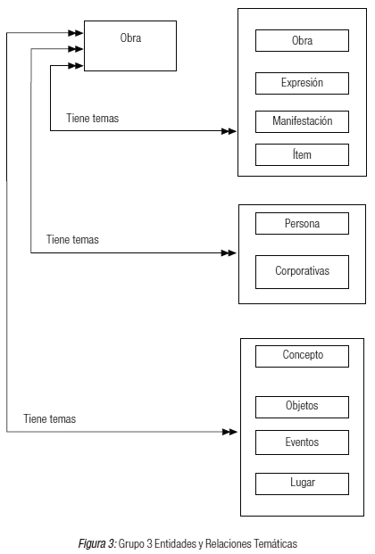 Recordkeeping Innovation es una empresa australiana. Hace un comentario (2017) que merece ser discutido con respecto a ceñirse a las entidades tradicionales de la archivística. Señala que lugar y concepto/cosa no son críticas a la práctica archivística. Justamente, se entiende que la entidad que corporiza la materia es un elemento contextual insoslayable y permite tejer la vinculación con otros objetos que no pertenecen al mundo archivístico. De allí la importancia sustantiva de esta entidad que encontramos en el mundo de la bibliotecología, en el modelo conceptual FRBR, como se aprecia en la Figura 8.