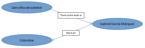Los datos abiertos enlazados son una estrategia de interoperabilidad para la integración de la información proveniente de las instituciones conocidas como GLAM: galerías, bibliotecas, archivos y museos, al permitir enlazar esta información a través de triplas RDF2. Las tripletas RDF son oraciones que se forman con un sujeto, un predicado y un objeto. Un sujeto es, por ejemplo, un recurso libro, que tiene como autor (predicado) un escritor (objeto); por ejemplo: «Cien años de soledad tiene como autor a Gabriel García Márquez». Si luego decimos: «Gabriel García Márquez nació en Colombia», se va formando una serie de oraciones del tipo (S,P,O), que se pueden expresar como un grafo, como se muestra en la Figura 16.