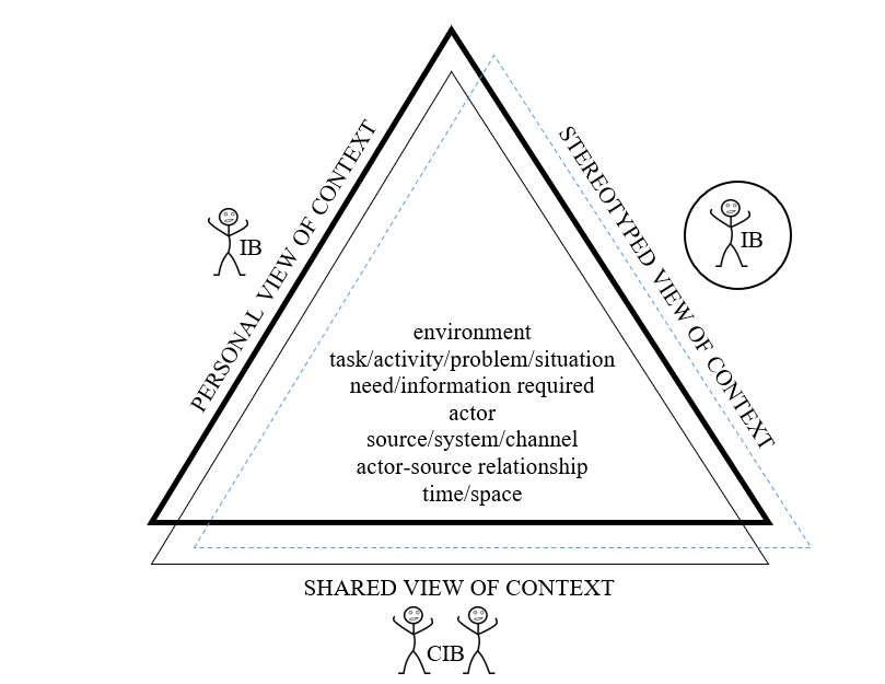 Along with the person and the information sources that the person goes to and the information world that they inhabit, a primary aspect of the information behavior field is context. Brenda Dervin called it an “unruly beast” (Agarwal, 2012, 2018). We understand that context is of a person engaged in an activity – thus, without a specific type of information behavior – whether seeking, searching, evaluating, processing, avoiding, stopping, distorting, organizing, storing, using, disusing, creating, sharing, or encountering information (Agarwal, 2022) in a specific time and place – whether physical or digital or multidimensional/augmented, context has no meaning. The context of this author writing this paper is very different from that of this author picking one’s child from school, buying groceries in the supermarket, or teaching a group of students. Context looks different when viewed from different perspectives and can be reliably seen as consisting of one of seven elements – actor, environment, task/activity/problem situation, need/information required, source/system/channel, actor-source relationship, and time/space (Agarwal, 2018), with most variables studied in information behavior in the twenty-first century being aspects of one or more of these elements.