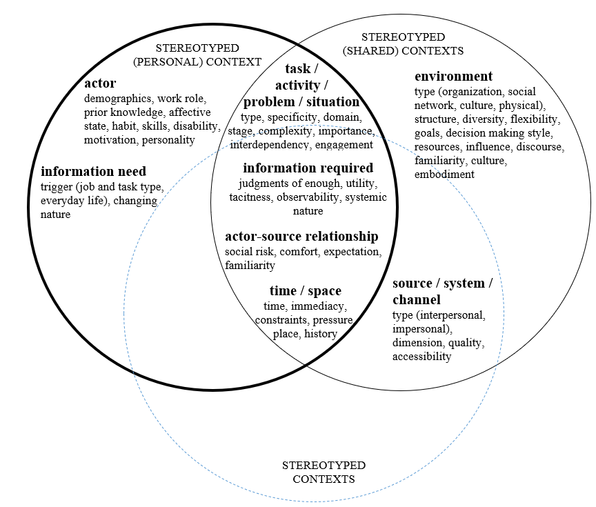 Agarwal, N.K. (2018). Exploring context in information behavior: seeker, situation, surroundings, and shared identities. Synthesis Lectures on Information Concepts, Retrieval, and Services 9(7), 1-163. https://doi.org/10.2200/S00807ED1V01Y201710ICR061