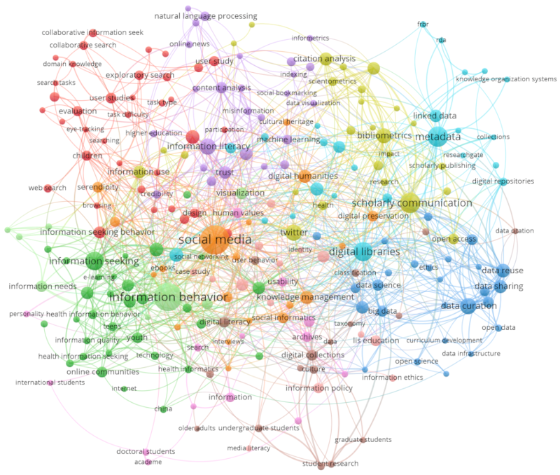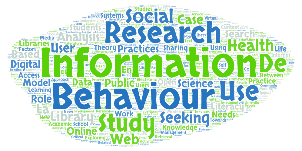 In most information behavior research, information, not surprisingly, is the most commonly occurring keyword. Thus, seeing ourselves as belonging simply to the information field may not be off the mark. Almost all the other keywords are either activities associated with information such as behavior, research, study, seeking, use, analysis, etc., or domains such as social, library, health, web, and so on.