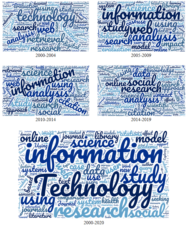 Apart from reviews, specific primary sources were utilized, as appropriate. Content analysis (see Krippendorff, 2018) was a suitable method for the following portions as it helped in creating word clouds summarizing the major topics researched in information behavior since the year 2000. Along with an umbrella review, the study utilizes the content analysis method for: